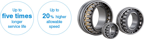 These bearings have a significantly increased roller diameter and incorporate the maximum number of rollers, thus achieving both a high load capacity and a longer service life. Maintenance intervals can also be extended.